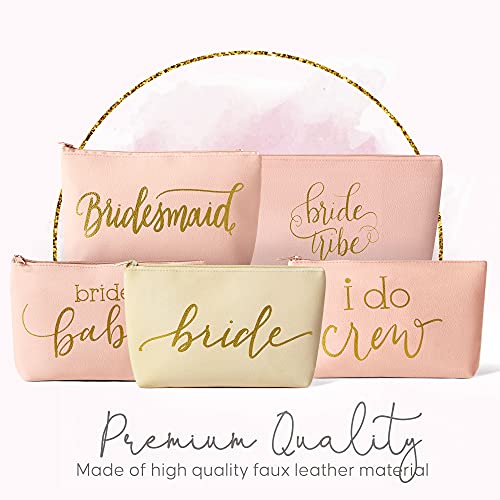 Faux Leather Makeup Bag, Bridal Party Makeup Bag, Bachelorette Party Favors, 1 Bride (Cream) and 10 Bride’s Babes (Pink Blush), 11 Piece Set