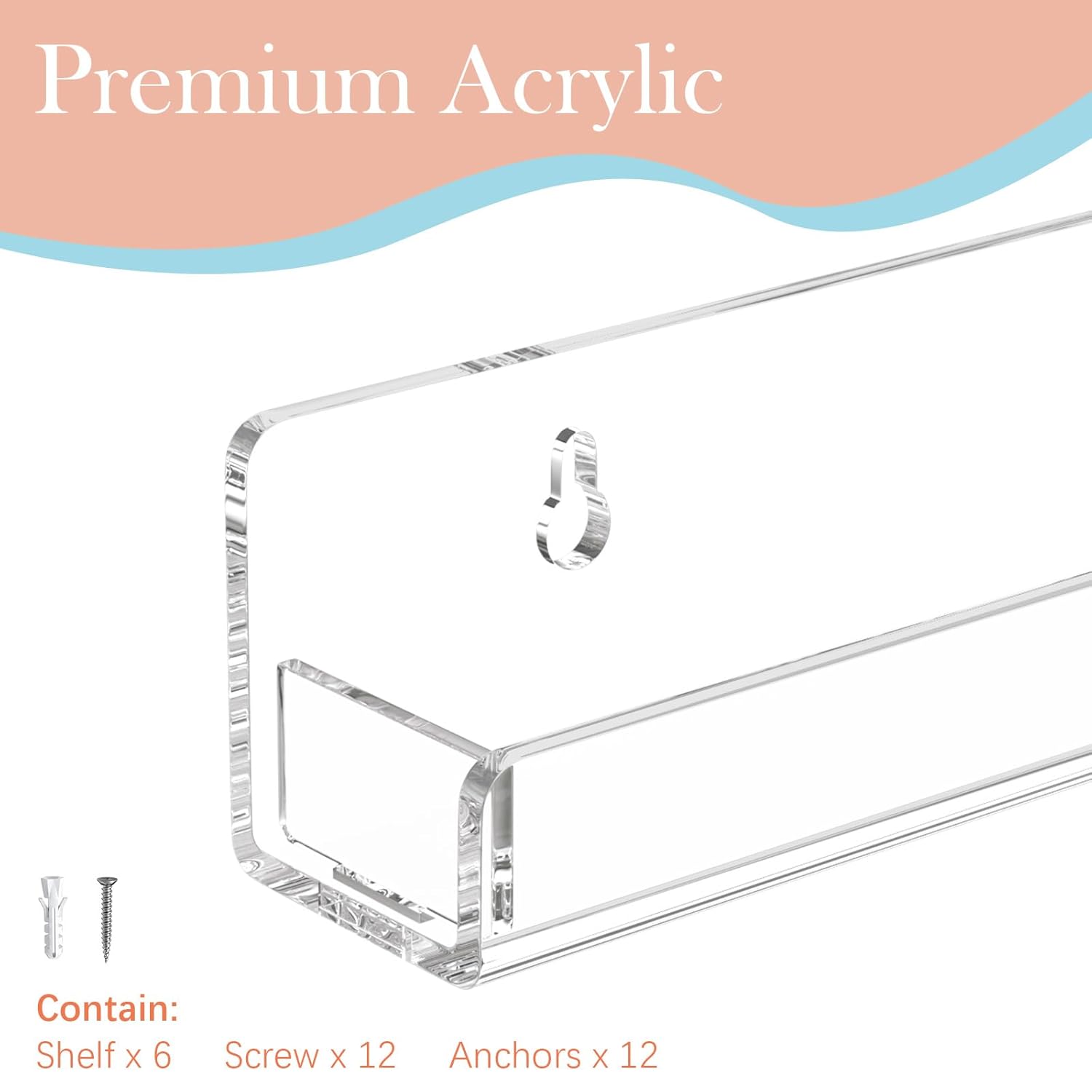 FEMELI Nail Polish Wall Rack: 6 Shelves 15 Inch Clear Acrylic Nail Polish Organizer for 66-90 Bottles Multi-Purpose Acrylic Floating Shelves (15 Inch, Clear)