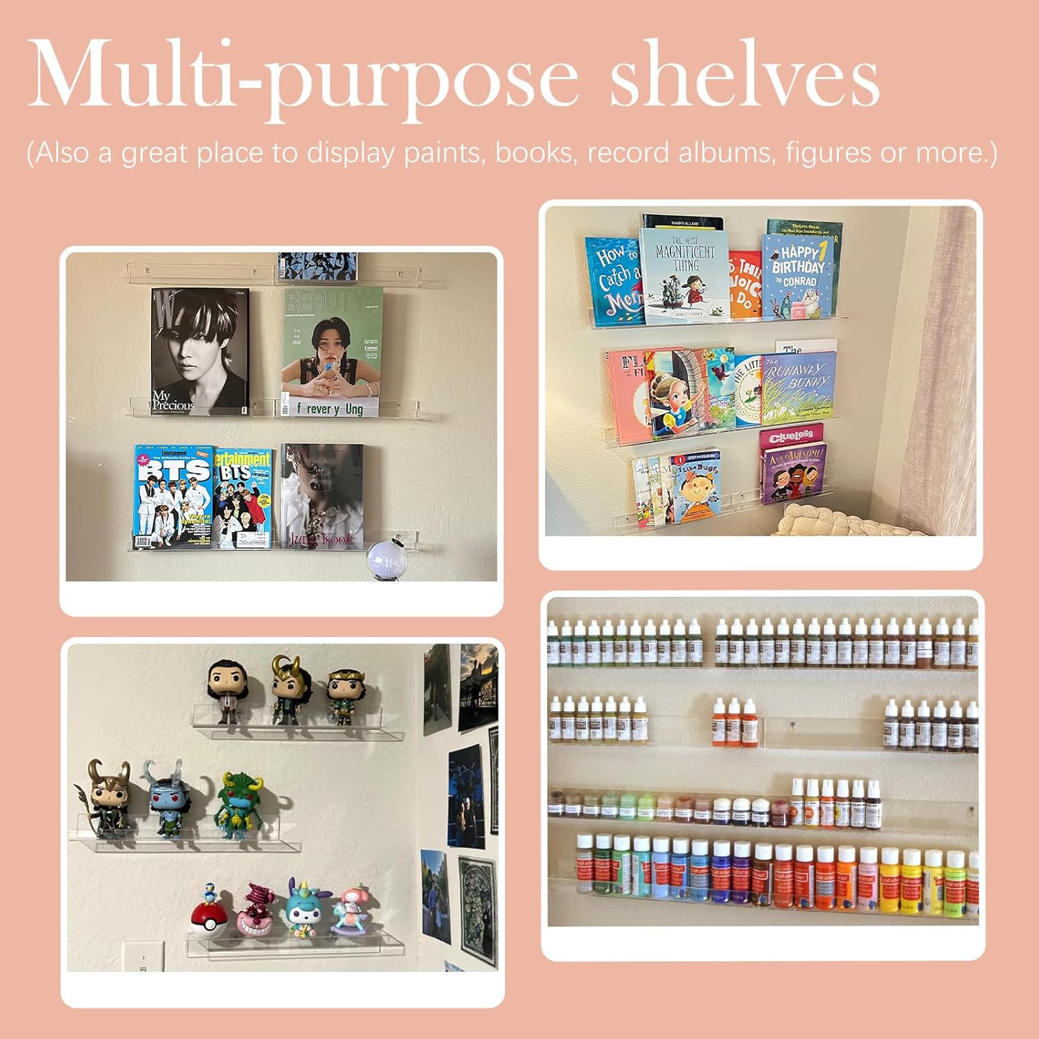 MULTI-PURPOSE ACRYLIC FLOATING SHELVES –FEMELI nail polish rack can be used as kids bookshelves, small toy shelves, picture racks, mini collectibles display shelves and is a good place for a series of small things to display or organize