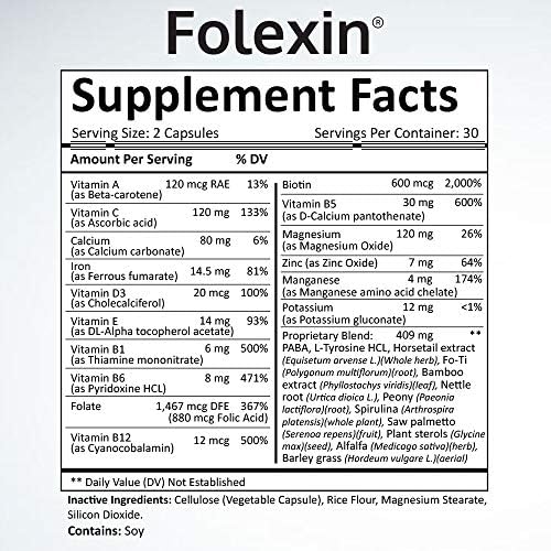 Folexin | Hair Growth Support Formula – Dietary Supplement, 60 Capsules, 1 Month Supply