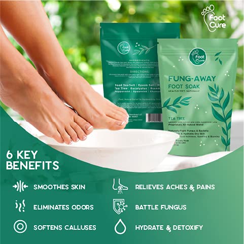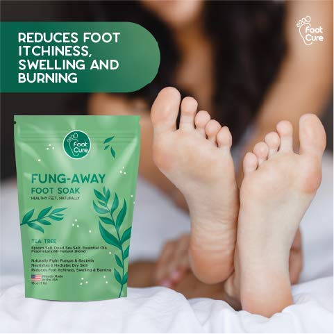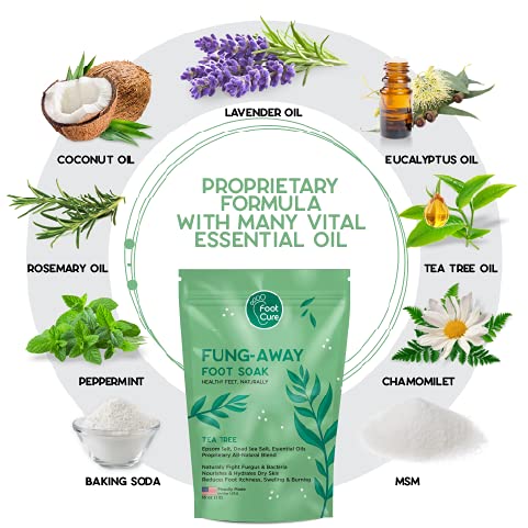 Foot Cure Tea Tree Oil Foot Soak with Epsom Salt – Natural Blend Soothes Sore & Tired Feet, Softens Calluses, For Toenail Fungus & Athletes Foot, Fungal Toe Spa Treatment, Pedicure, Made in USA, 16 oz