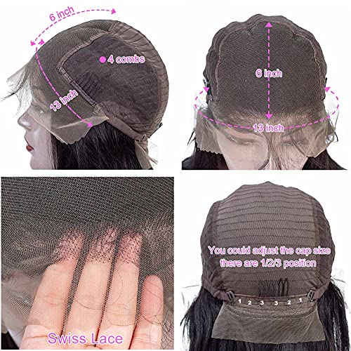 3.❤️Wig Cap and Lace Size: 13×6 Lace Frontal Wigs Human Hair,22.5 inches Medium Cap Size, Ear to Ear HD Transparent Swiss Lace with Adjustable Straps and 3 Combs, Match Head Perfectly.