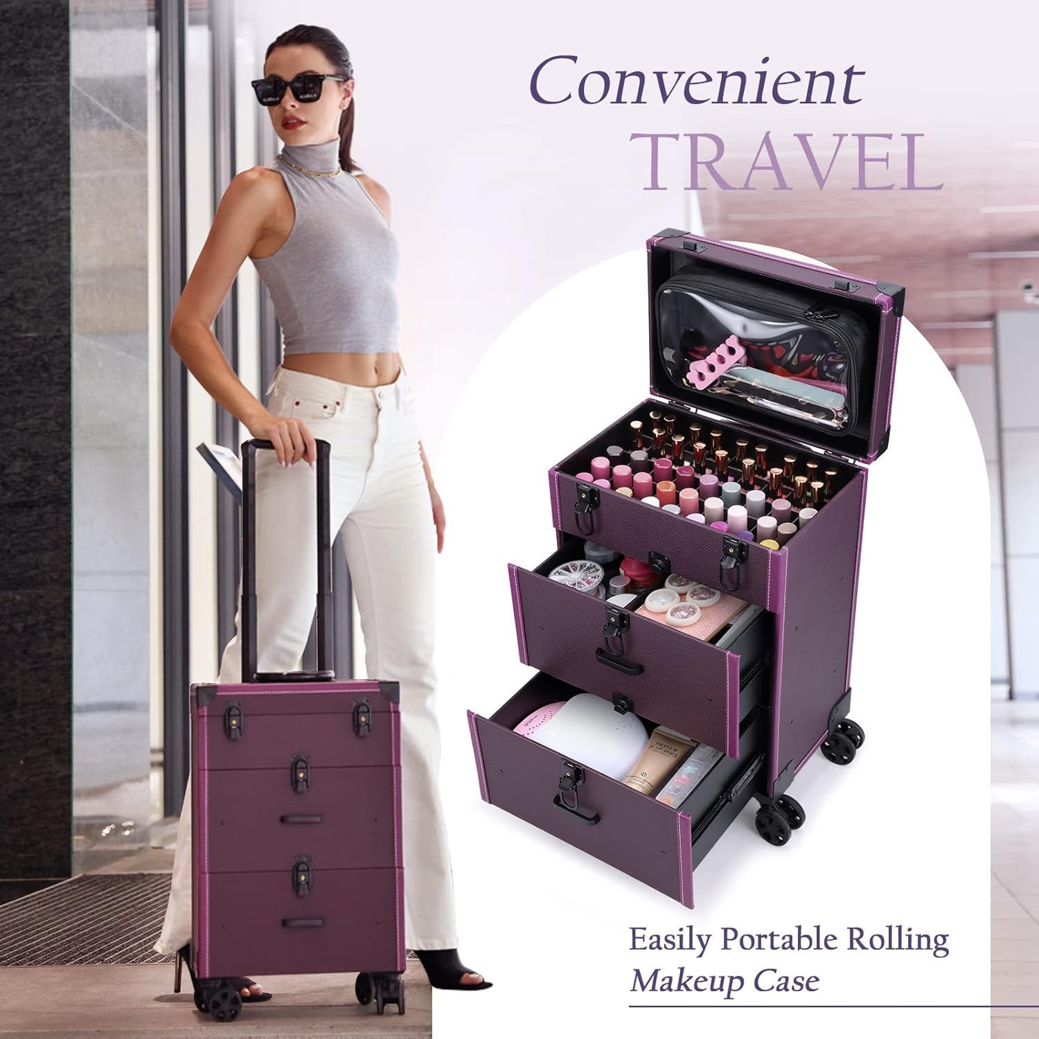 Rolling Makeup Train Case Cosmetic Organizer Large Manicure Case on Wheels