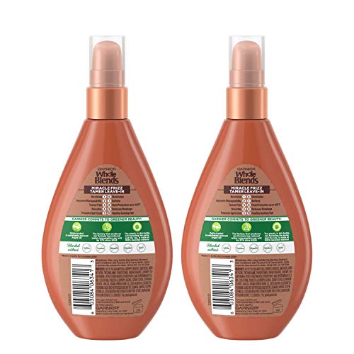 Garnier Haircare Whole Blends Sulfate Free Miracle Frizz Tamer 10-in-1 Frizz Taming Leave-In with Coconut Oil and Cocoa Butter, for Very Frizzy Hair, 2 Count (Packaging May Vary)