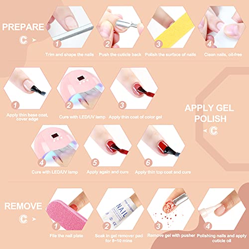 Healthy and Long Lasting: The gel nail polish made of environmental natrual resin, non-toxic, low smell, you can feel free to use it with no harm to nails.Designed with anti-cracking material,it will last for 21+ days with proper application.