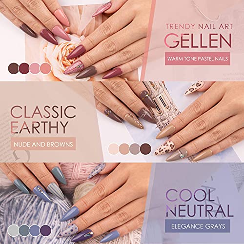 Gellen Gel Nail Polish Kit with U V LED Light 72W Nail Dryer, 12 Gel Nail Colors, No Wipe Top Base Coat, Nail Art Decorations, Manicure Tools, All-In-One Manicure Kit, Nude Grays