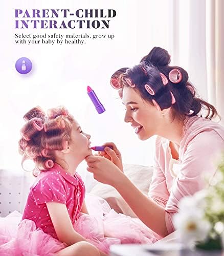 The lip gloss and lipsticks will keep your child’s lips glossy, shiny, and sparkly. Whether they’re playing a game of dress-up or putting on some gloss for a special occasion, the Geiile makeup set is a perfect starter kit for your little stylist! When the makeup and hair dye fun is done, simply use the soap and water to clean your face and hop in the shower to rinse off the hair color easily.Temporary color but permanent and creative fun.