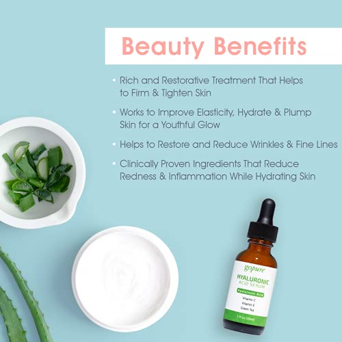 EXCELLENT RESULTS FOR ALL SKIN TYPES: goPure Hyaluronic Acid Face Serum has an outstanding hydration and renewing effect you can feel and see. For best results, use with our other rejuvenating skin care products like goPure Retinol Face Cream