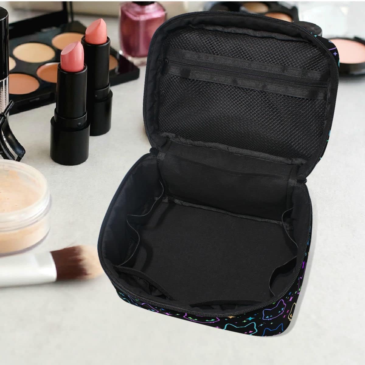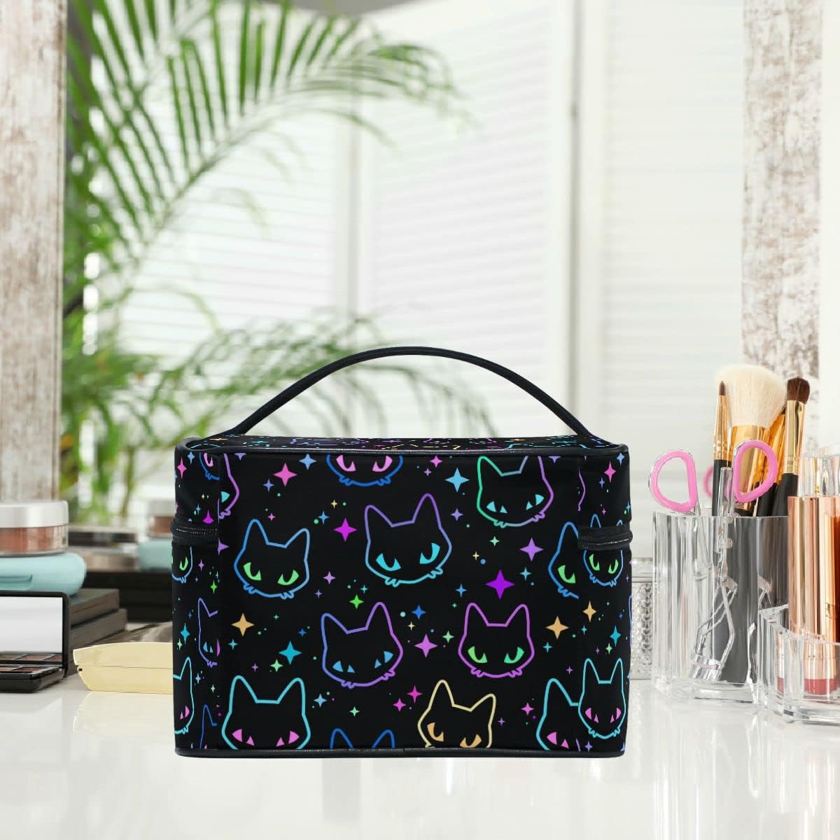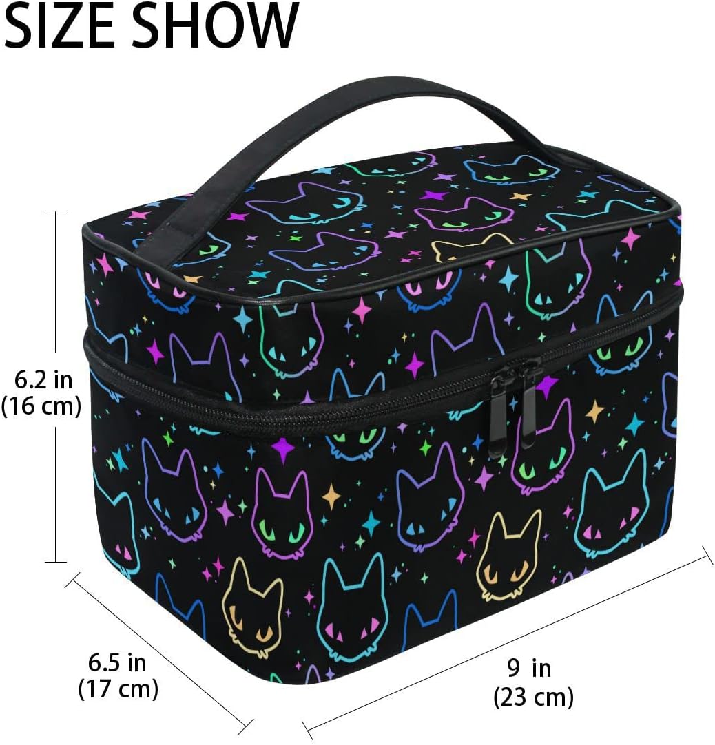 Goth Makeup Bag, Colorful Neon Cat Heads Makeup Organizer Bags Toiletry Bag Box Travel Cosmetic Bag Make Up Train Case for Women Teen Girl Ladies