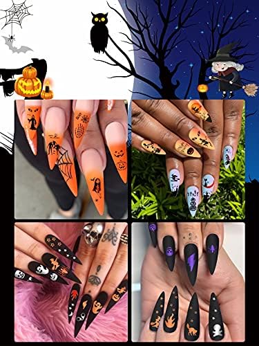 Include 3 sheets Halloween nail stickers which have different colors and shapes.These colorful nail decals nails supply are the classic Halloween theme patterns including skulls, pumpkins, spiders, bats, witches, ghosts, cats etc.Nail decals are made of great PVC material with a flat surface, amazing adhesion and can be easily peeled and applied to your nails. These nail accessories can meet your halloween nail charms decoration and DIY needs. Acrylic nail supplies for nail techs fit for professional use or home use.