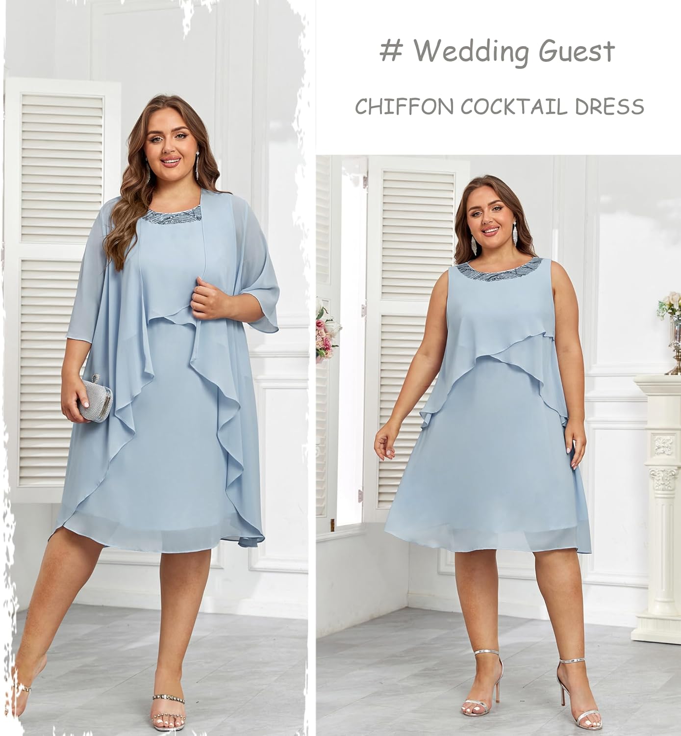Plus Size Two Piece Fall Wedding Guest Dress Sequin Formal Dress