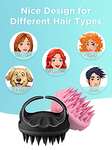Heeta Shampoo Brush, 2-Pack Upgraded Wet and Dry Hair Scalp Massager Brush with Soft Silicone Hair Brush for Women, Men, Pets (Black & Pink)