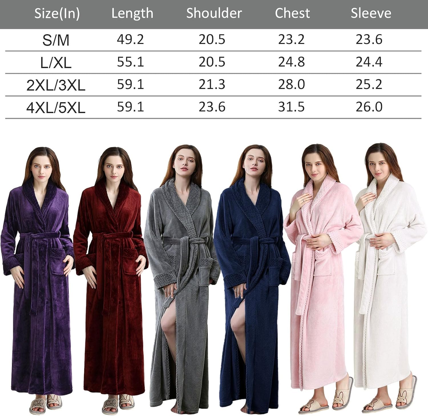 Hellomamma Long Bath Robe for Womens Plush Soft Fleece Bathrobes Nightgown Ladies Pajamas Sleepwear Housecoat