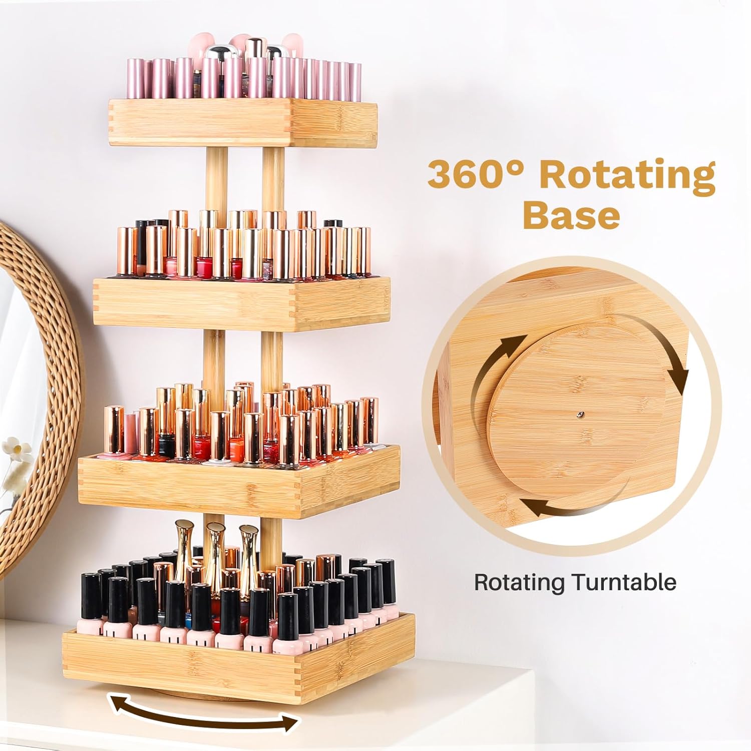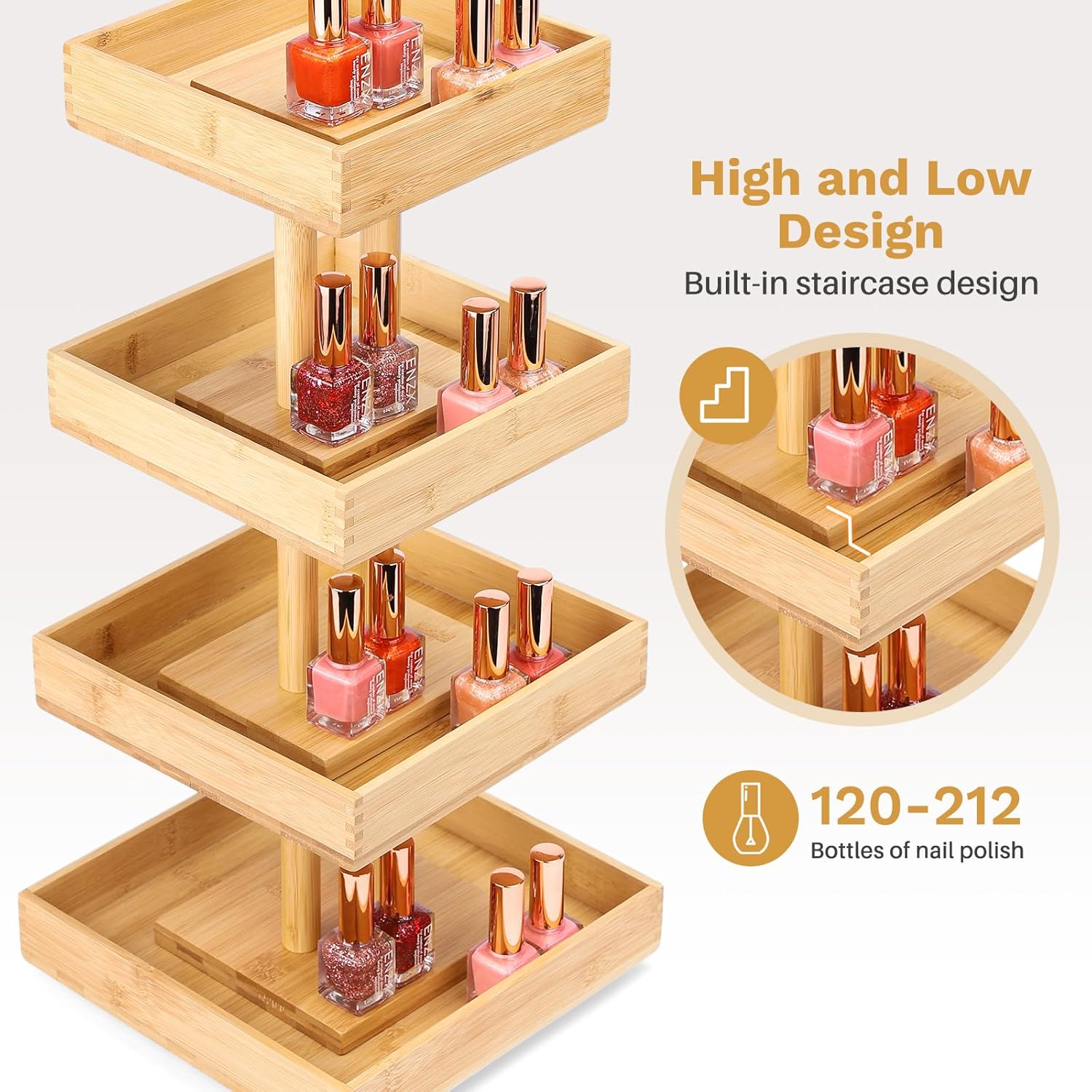 Homde Nail Polish Organizer for 120-212 Bottles|360 Rotating Nail Polish Rack Holder|Nail Display Storage Shelf for Fingernail Polish and Essential Oil|Gifts for Women Girls- Bamboo,Brown