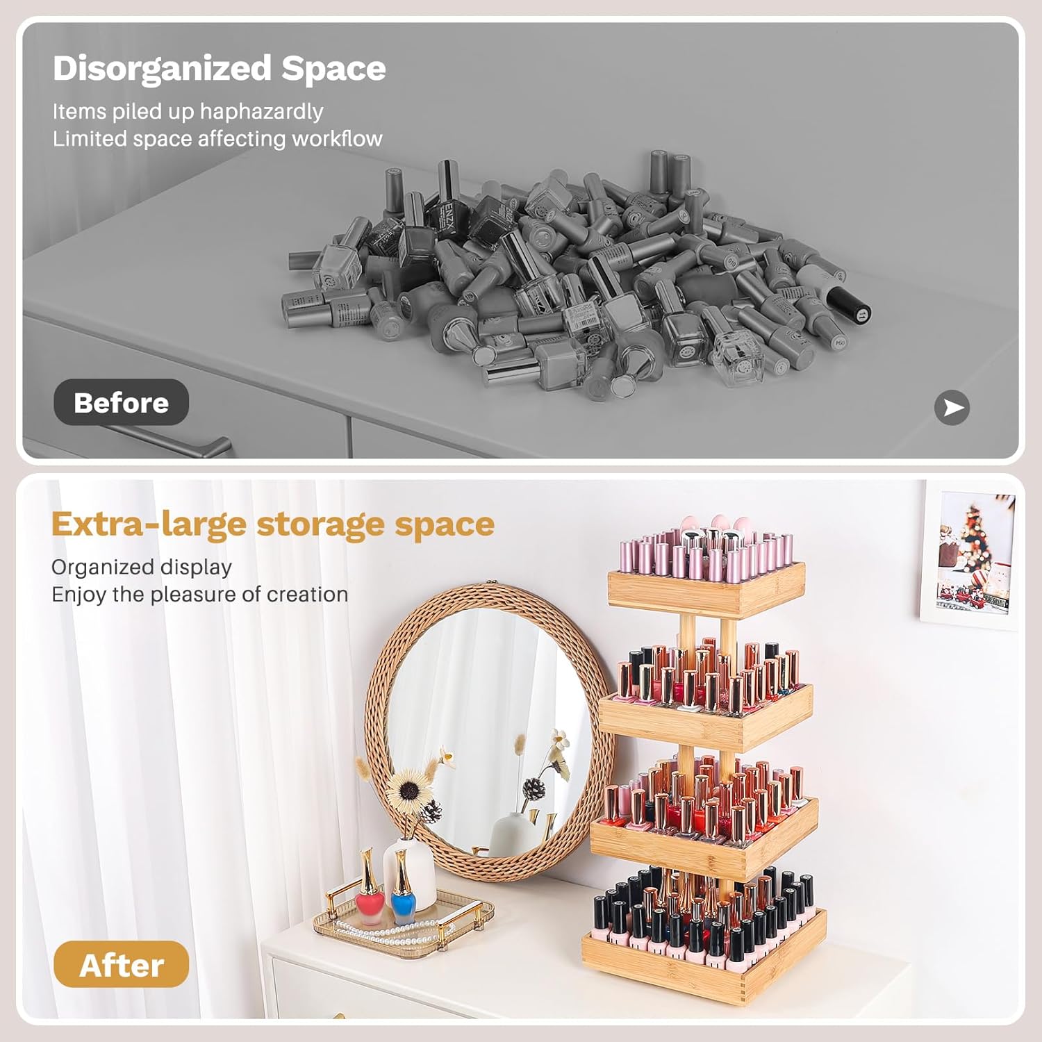 Space-saving and Organized: Our nail polish organizer features a vertical storage design, allowing us to save space and effectively utilize tabletop space, helping us to keep our nail polishes neatly organized.