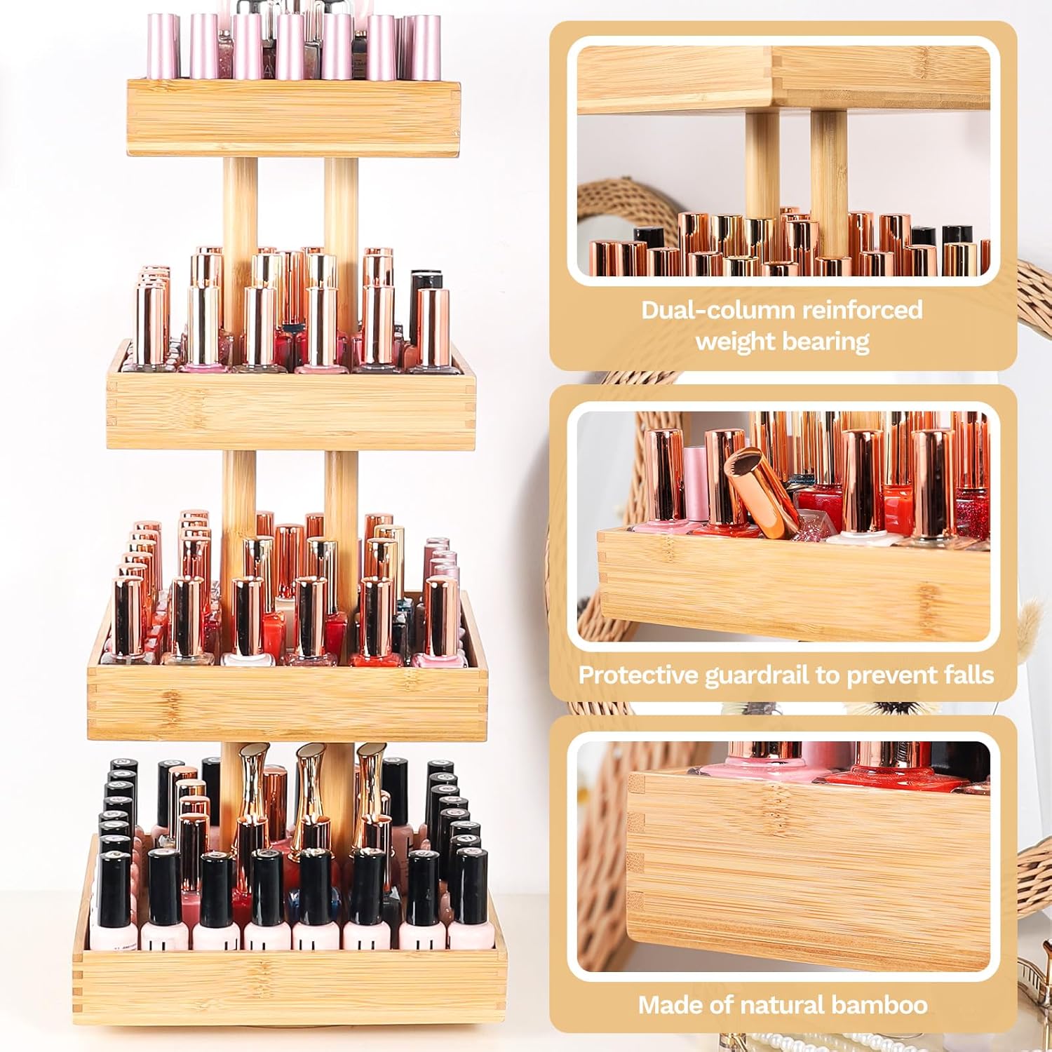 Bamboo Material: Our nail polish stand organizer is made of bamboo, which has excellent strength