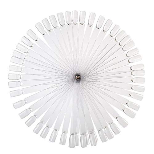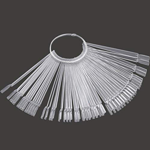 JASSINS 50 Pcs Clear Fan-shaped False Nail Swatch Sticks Nail Polish Practice Display Art Tips Nail Sample Sticks With Metal Split Ring