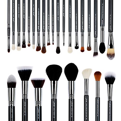 Jessup 27 pcs Pro Set Makeup Brushes Professional Foundation Eye Shadow Lipstick Face Power Liquid Cream Fiber Hair Handmade Brush Tools Black/Silver T133
