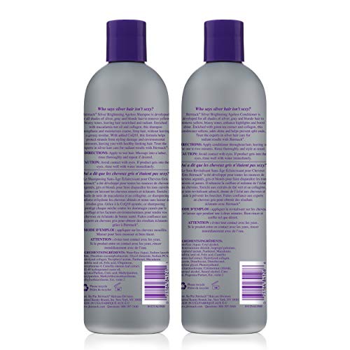 Remove Brassy Tones – Our Silver Brightening Ageless Shampoo & Conditioner is developed for all shades of silver, gray and blonde hair to remove yellow, brassy tones, enhance highlights and boost shine, leaving hair nourished and radiant.