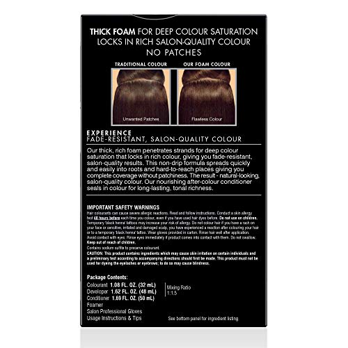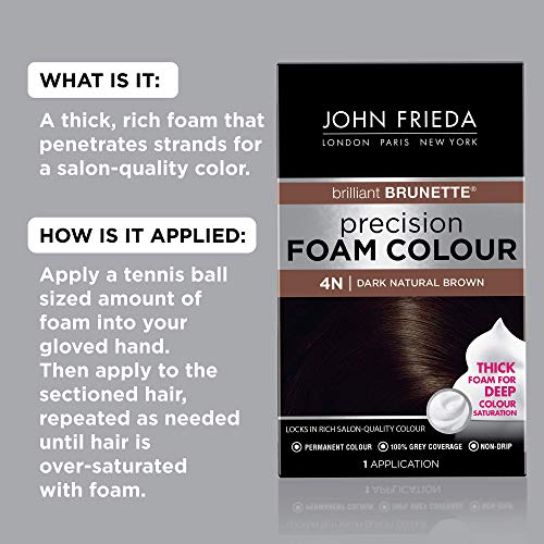 John Frieda Precision Foam Color, Dark Natural Brown 4N, Full-coverage Hair Color Kit, with Thick Foam for Deep Color Saturation