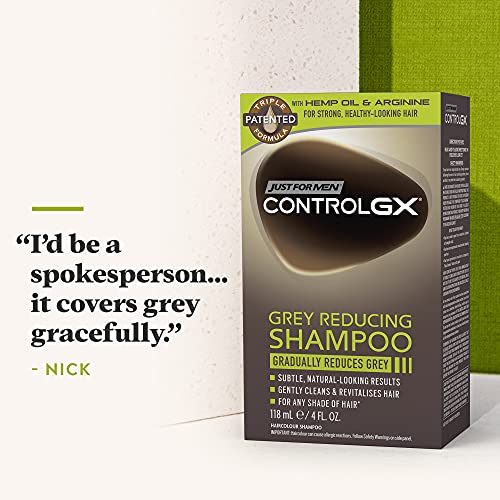 Just For Men Control GX Grey Reducing Shampoo, Gradually Colors Hair, Gently Cleans and Revitalizes for Stronger and Healthier Hair, 4 Fl Oz – Pack of 1
