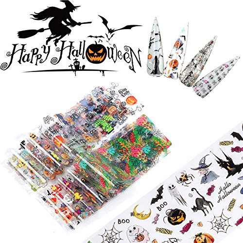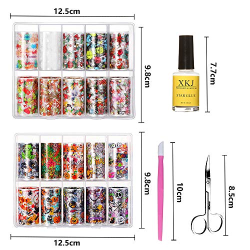 Kalolary 20 Rolls Halloween Christmas Starry Sky Stars Nail Art Foil with Nail Glue, Holographic Nail Art Transfer Stickers Acrylic Decals DIY Decoration, for Nail Art Salon or Home Use