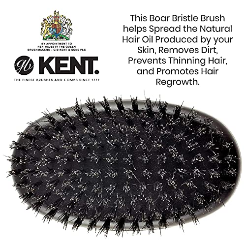 Kent Finest Men’s MN11 Classic Oval Ebony Wood Black Bristle Hair Brush + Kent LPC2 Hair Brush Cleaner – Best Hair Care Kit for Men, 360 Wave Brush, Encourages Hair Growth