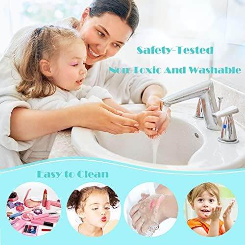 KIDS MAKEUP KIT, GIRLS REAL PRETEND PLAY MAKEUP TOY, WASHABLE MAKEUP SET FOR TODDLER AGE 4 5 6 7 8 9 10 YEARS OLD.