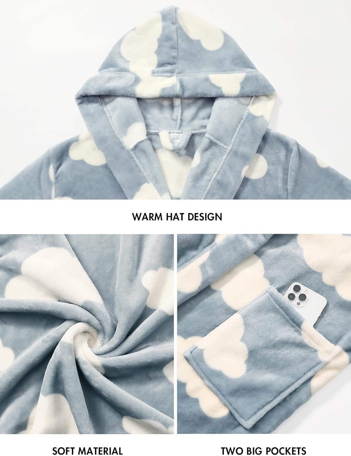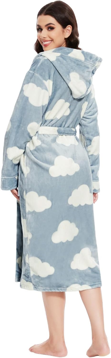 Kniffi Womens Winter Robe Fleece Hooded Bathrobe Plush Warm Robes