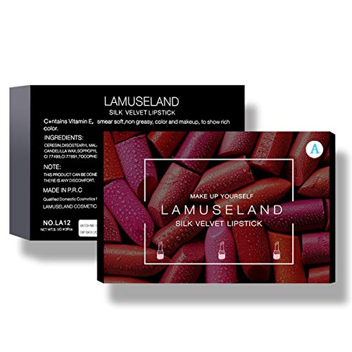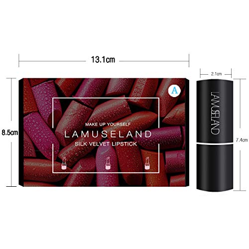 LAMUSELAND Matte Velvet Lipstick Set, 3pcs/pack Long-lasting Red Silk Lip Gloss Makeup Tools Gift Set for Women Lady Girls (A)