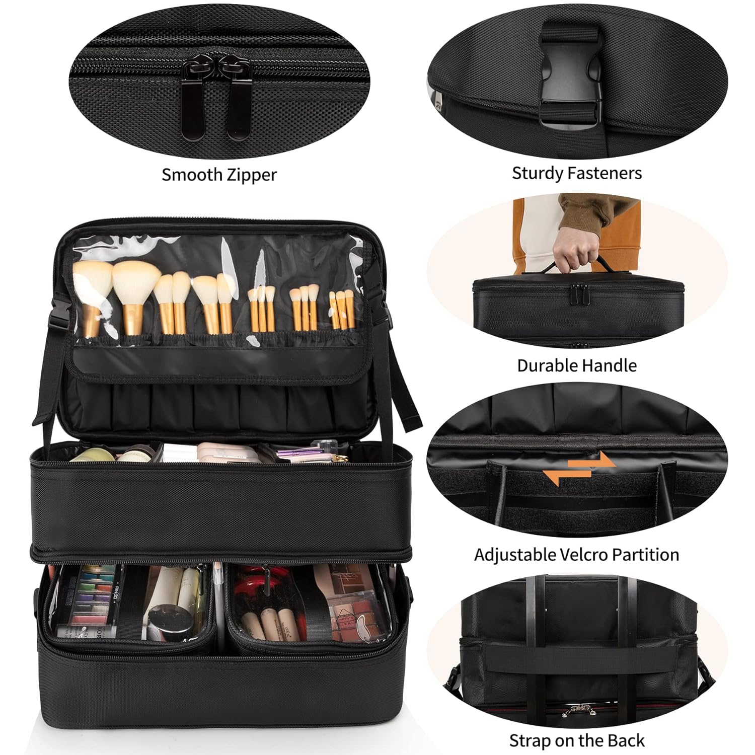 Meet All Your Needs:You can change the big trolley into a portable suitcase,which is suitable for a hairstylist to organizer hair tool accessories.The other makeup travel case is perfect for organizing and storing cosmetics and beauty tools like foundation powder,lipsticks,mascara,hairdryer,etc,.Ideal for hairdressers, makeup artists, and nail technicians. The top handle and an adjustable shoulder strap-foam padded,are provided for you to lift the upper makeup case or carry it on your shoulder.