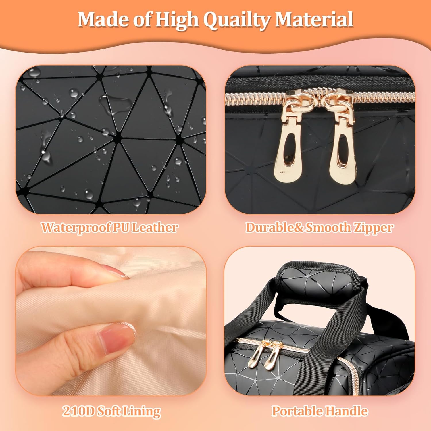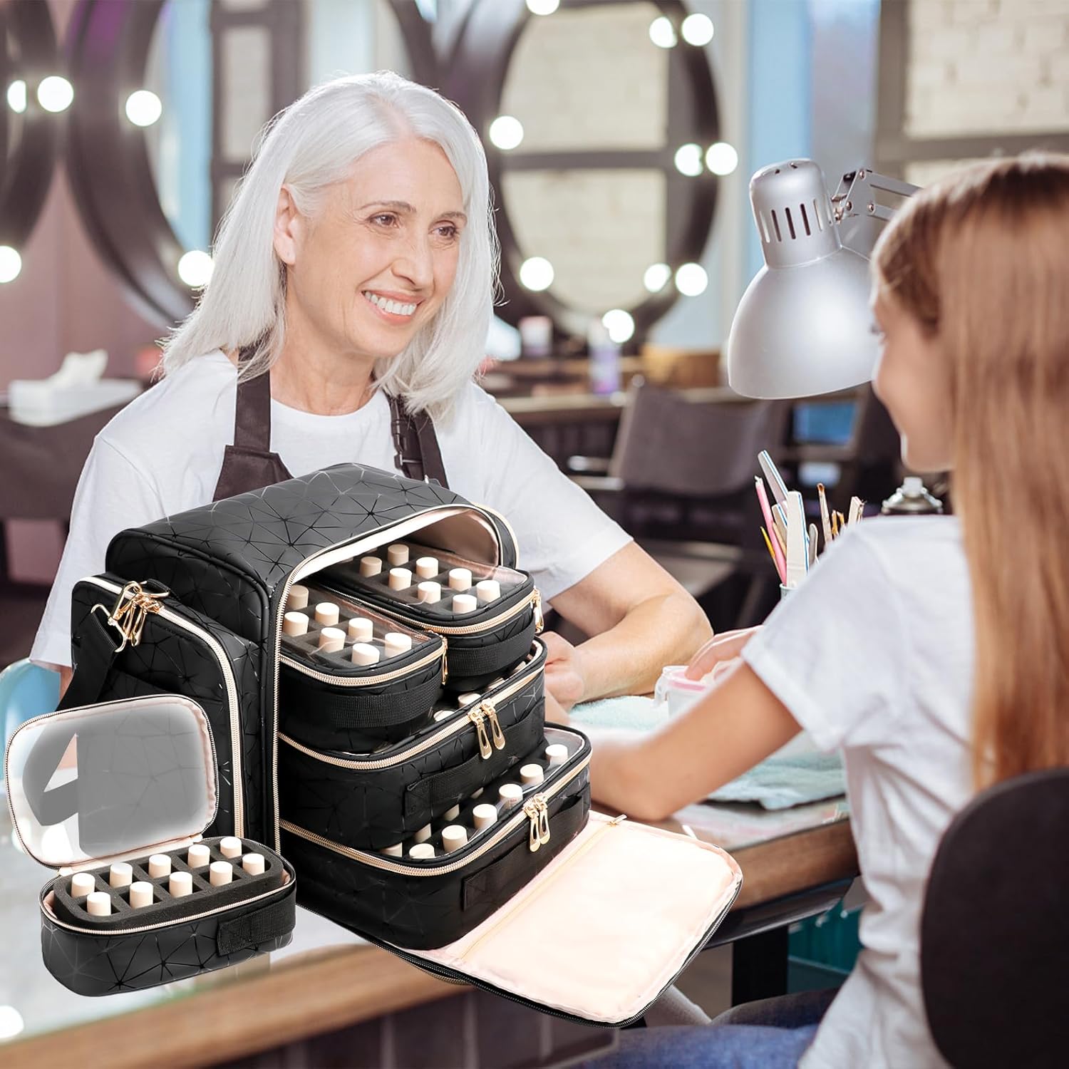 【Elegant& Premium PU Leather】This nail kit organizer bag is made of high quality PU leather, which is waterproof and wear-resistant. With heavy duty cotton fabric, the interior of the nail tech organizers and storage case has all-round thick padded lining to keep nail art supplies safe.
