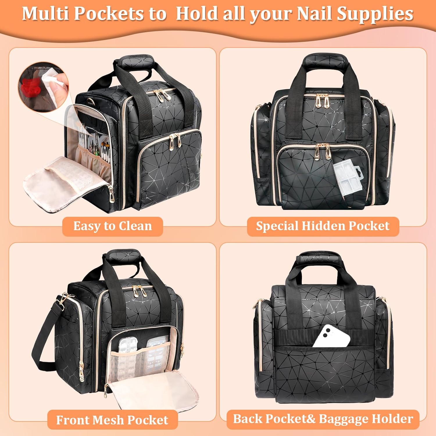 【3 Convenient Carrying Options】Nail bag organizer case comes with a removable padded shoulder strap, which is adjustable in length for comfortable carrying. It has double carrying handles with Velcro at the top, while the back luggage strap design making it convenient to carry. Portable for travelling or nail salon, a great gift for nail lovers and nail technicians.