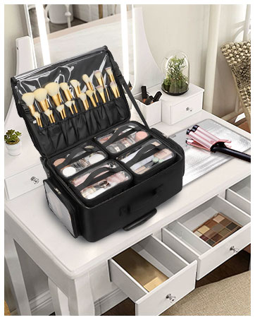 Easy to Carry – Featuring a retractable pull rod extending up to 25.5 inches, high-quality handle and four 360-degree freely rotatable wheels, this makeup case effortlessly glides along with you on any road. Making it convenient for on-the-go makeup artists or traveling makeup lovers.