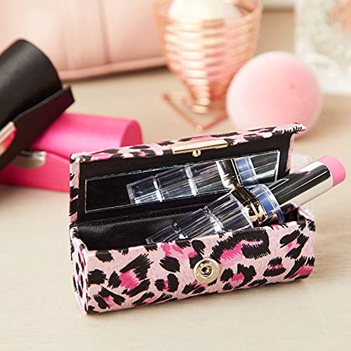 Keep your favorite lip makeup on hand with you anywhere you go thanks to this set of 8 lipstick cases with mirrors. Each lipstick case comes in a solid color or leopard print design to match your outfit of the day. Use the lipstick holder with mirrors to carry your lipgloss, lipstick, lip liner, and other lip-based makeup when traveling or during special events. These lipstick case for purses measures 3.3 inches and are small enough to fit into any bag. it also has a button on the top, which is convenient to open and close.