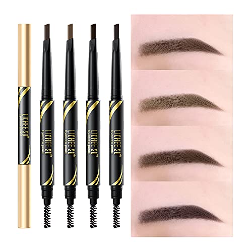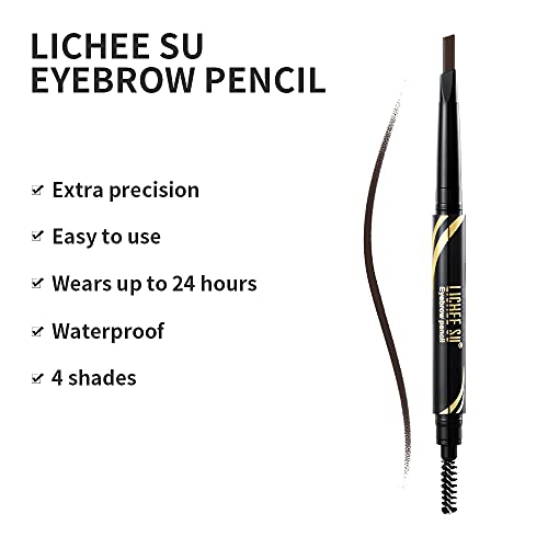 LICHEE SU Double-Ended Automatic Eyebrow Pencil,Makeup Eyebrow Definer Waterproof Pencil,Fills Brows,Long Lasting Eye Brow Pencil Cosmetics with Spoolie Brush,Brown,0.05 Oz