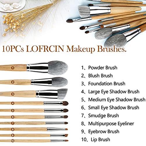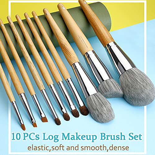 LOFRCIN Makeup Brush Set -10 PCs Wood Logs Handle Makeup Brushes for Premium Synthetic Foundation Eyeshadow Concealer Eyeliner Blush Lip Makeup Brushes