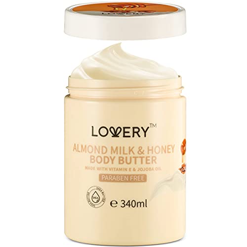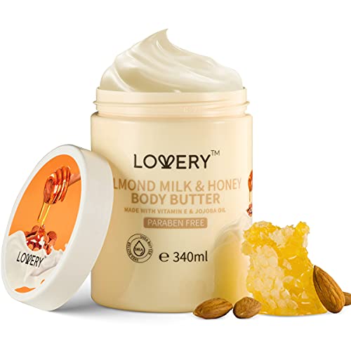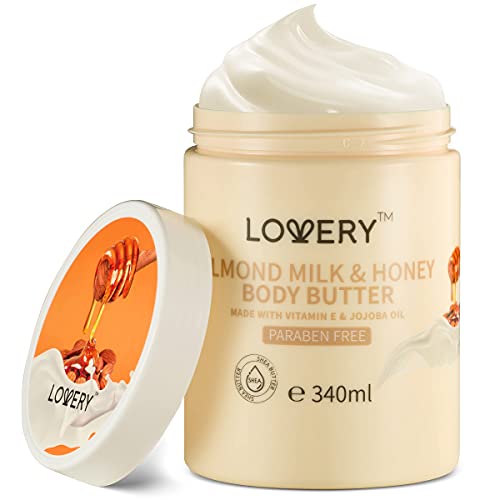 Lovery Almond Milk and Honey Whipped Body Butter – 2 Pack Ultra-Hydrating Shea Butter Body Cream Enriched with Jojoba Oil and Vitamin E – Natural Skin Moisturizer for Men and Women – Normal to Dry Skin – 23 ounces