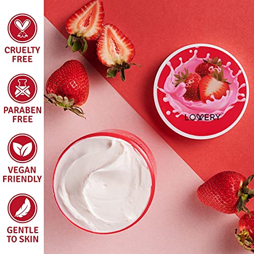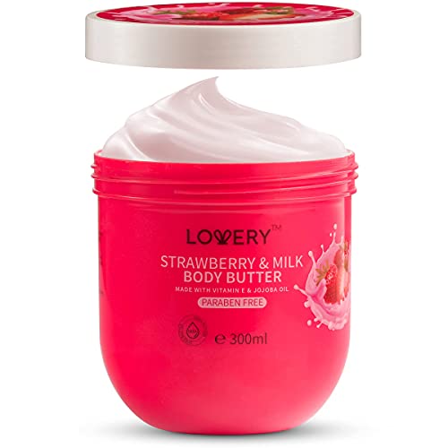 Lovery Strawberry Milk Body Butter – 12oz Ultra-Hydrating Shea Butter Body Cream Enriched with Jojoba Oil and Vitamin E – Natural Skin Moisturizer for Men and Women – Normal to Dry Skin