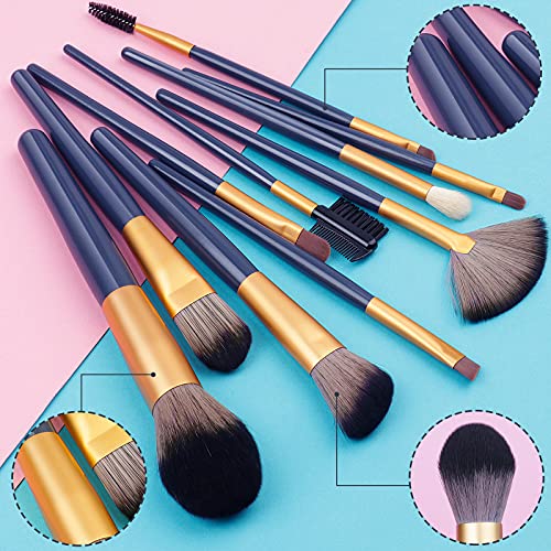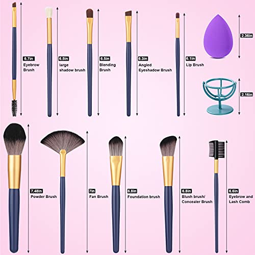 Lunasea Makeup Brushes Set Premium Synthetic Foundation Face Powder Blush Concealers Eyeshadow Brushes Makeup brushes Kits and Beauty Blender Sponge Holder (10+6pcs)