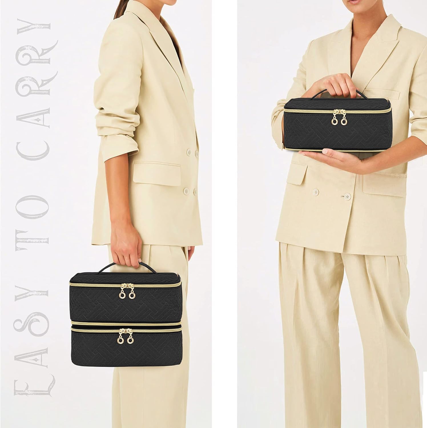 PORTABLE: Each bag has a separate handle to ensure the nail polish bottles are being carried evenly. 9.75″(L) x 8″(W) x 3.5″(H). (separate bag dimensions)