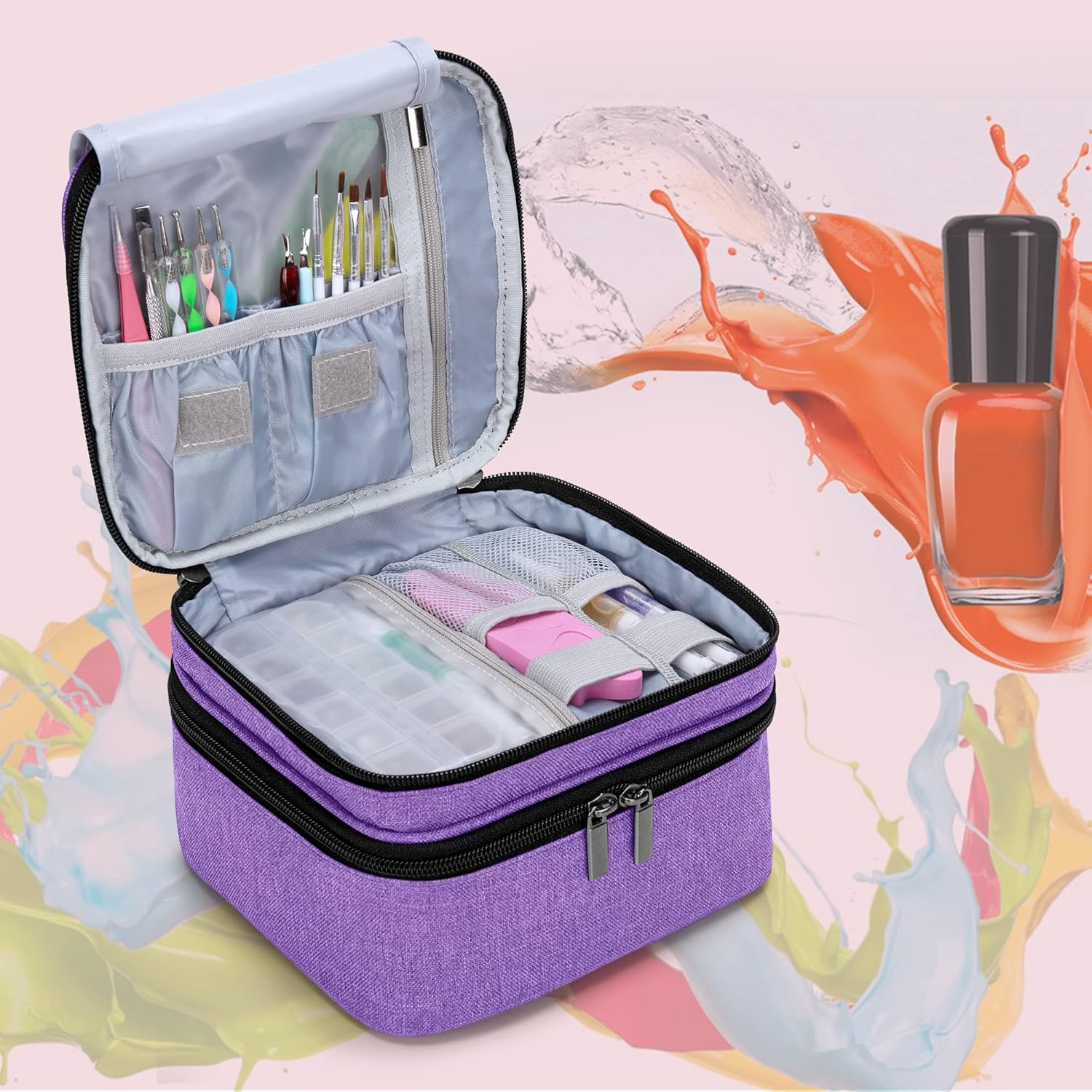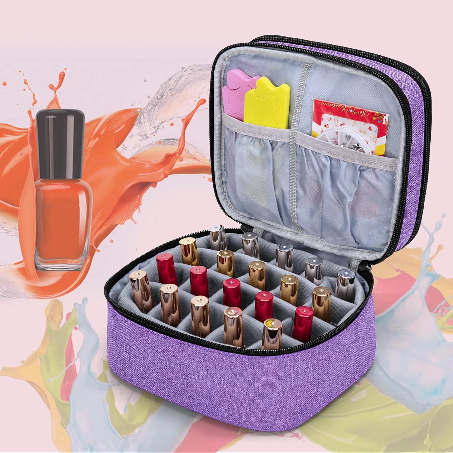 LUXJA Nail Polish Carrying Case – Holds 20 Bottles (15ml – 0.5 fl.oz), Double-layer Organizer for Nail Polish and Manicure Set, Purple