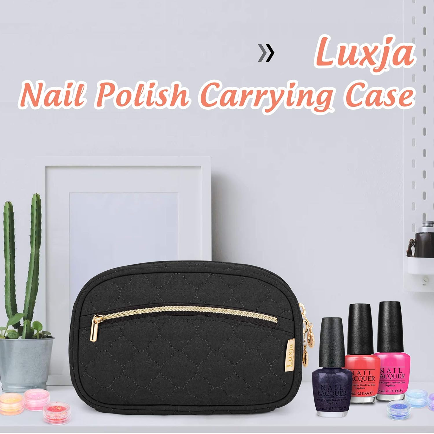 LUXJA Nail Polish Case – Holds 10 Bottles (15ml – 0.5 fl.oz), Nail Polish Organizer with Zipper Pockets (Bag Only), Black