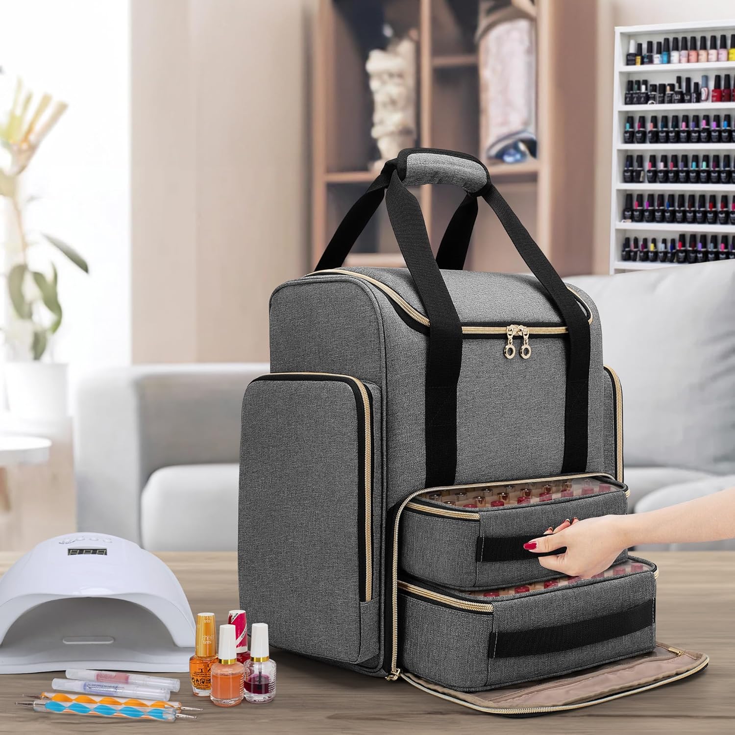 LUXJA Nail Polish Organizer Backpack Holds 70 Bottles and a Nail Lamp, Nail Polish Bag with 2 Removable Cases and Tools Storage Pockets (Patented), Gray