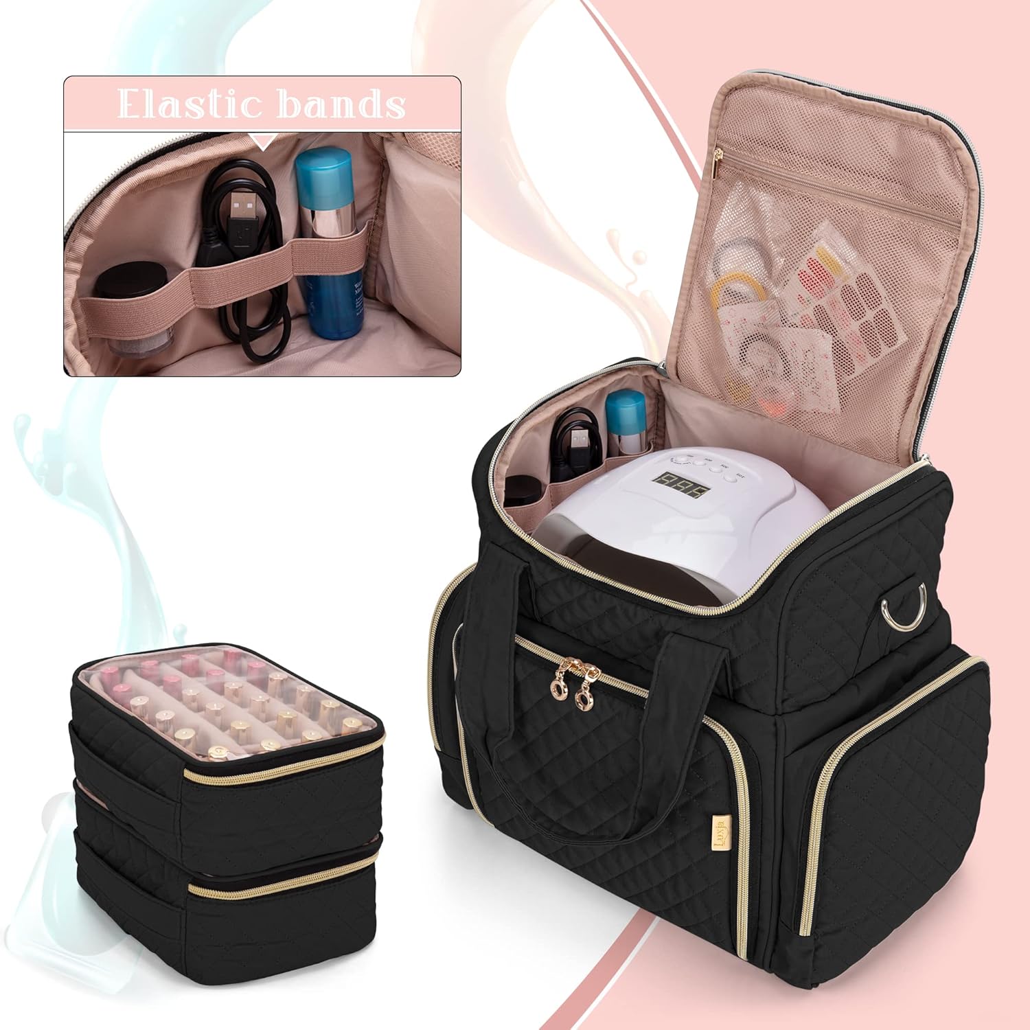 LUXJA Nail Polish Organizer Holds 48 Bottles and a Nail Lamp, Nail Polish Case with 2 Removable Bags and Tools Storage Pockets (Patent Pending), Black