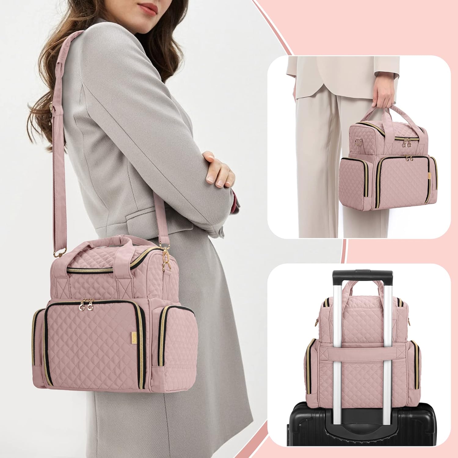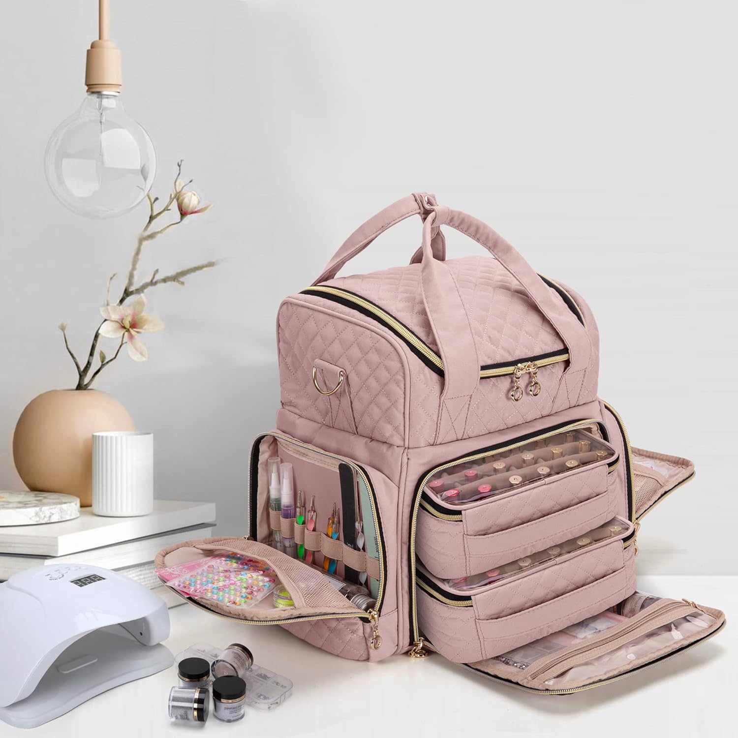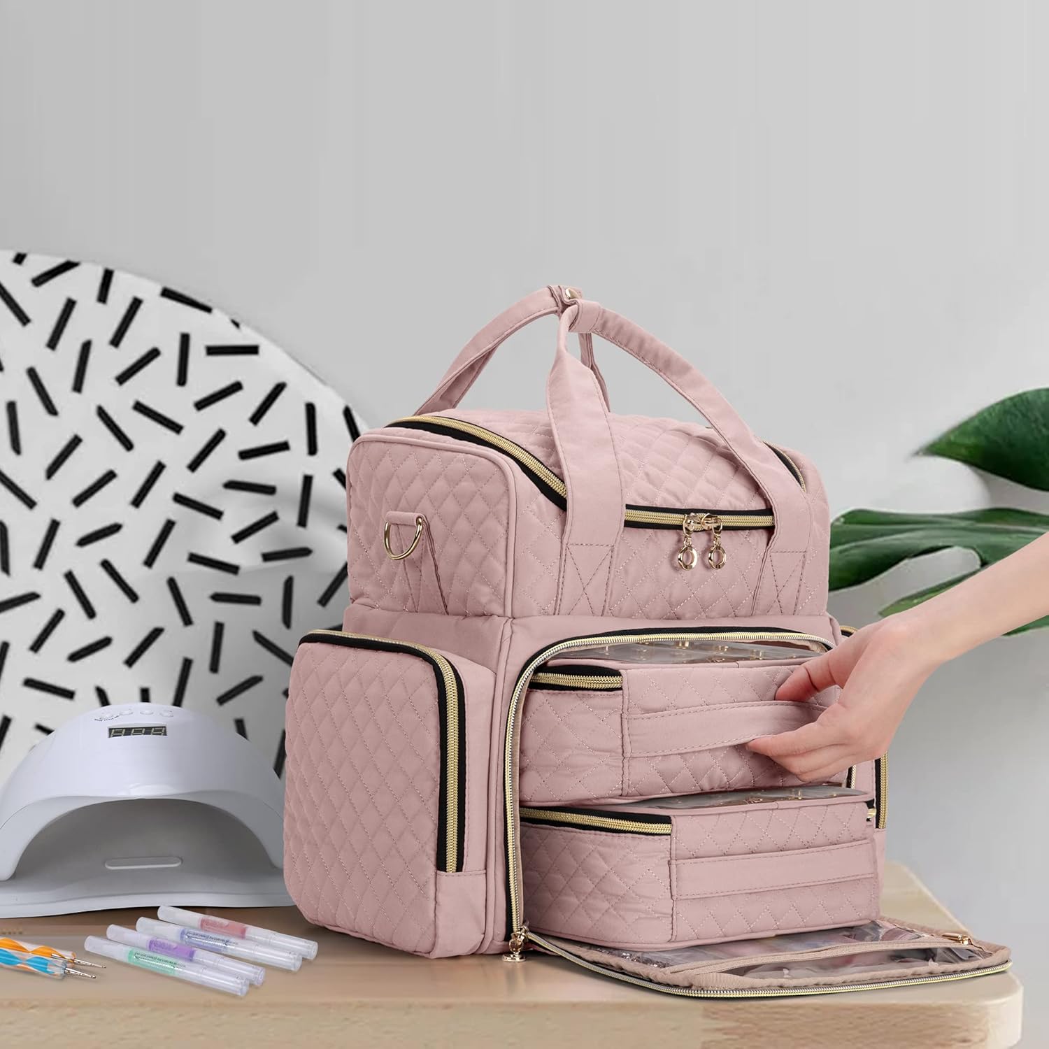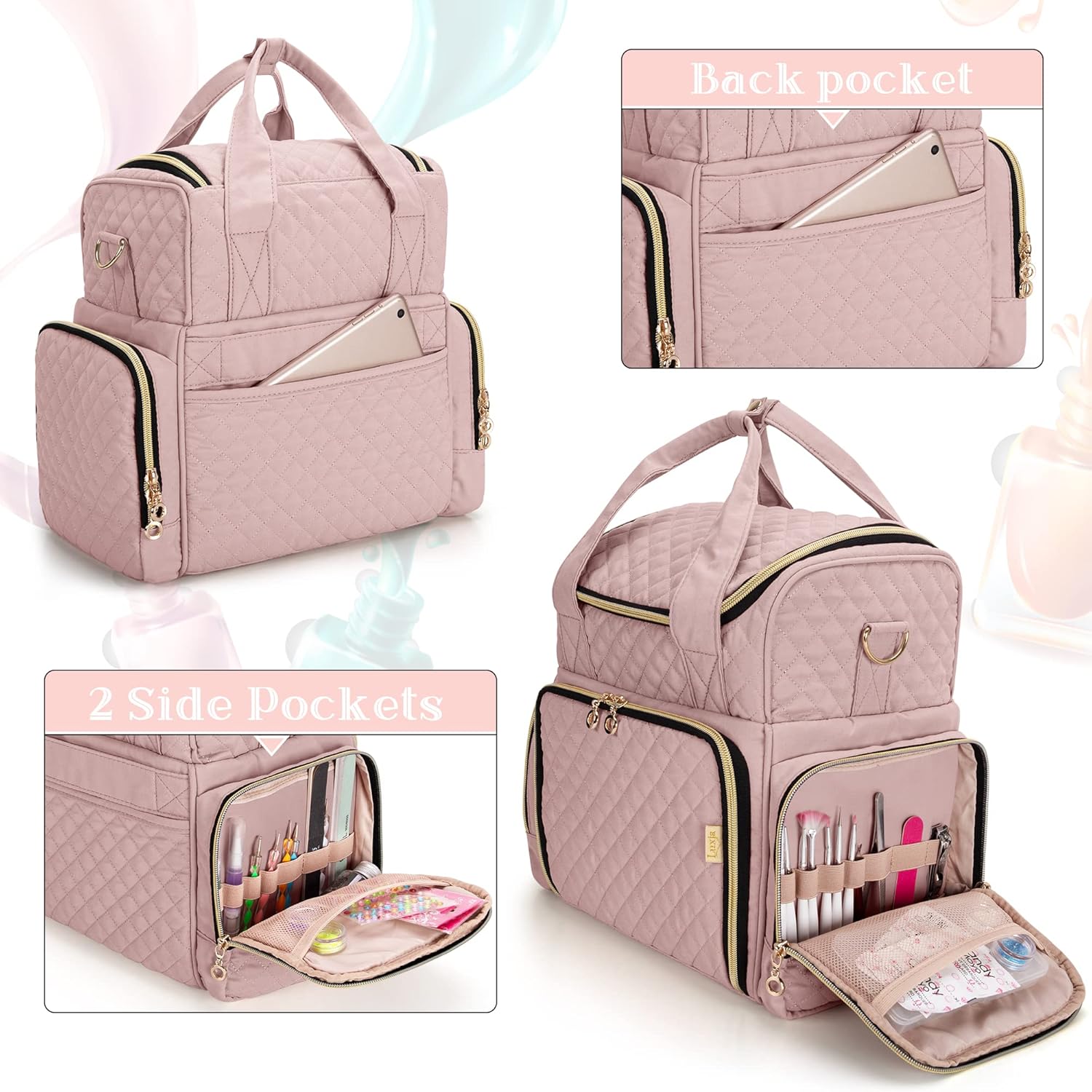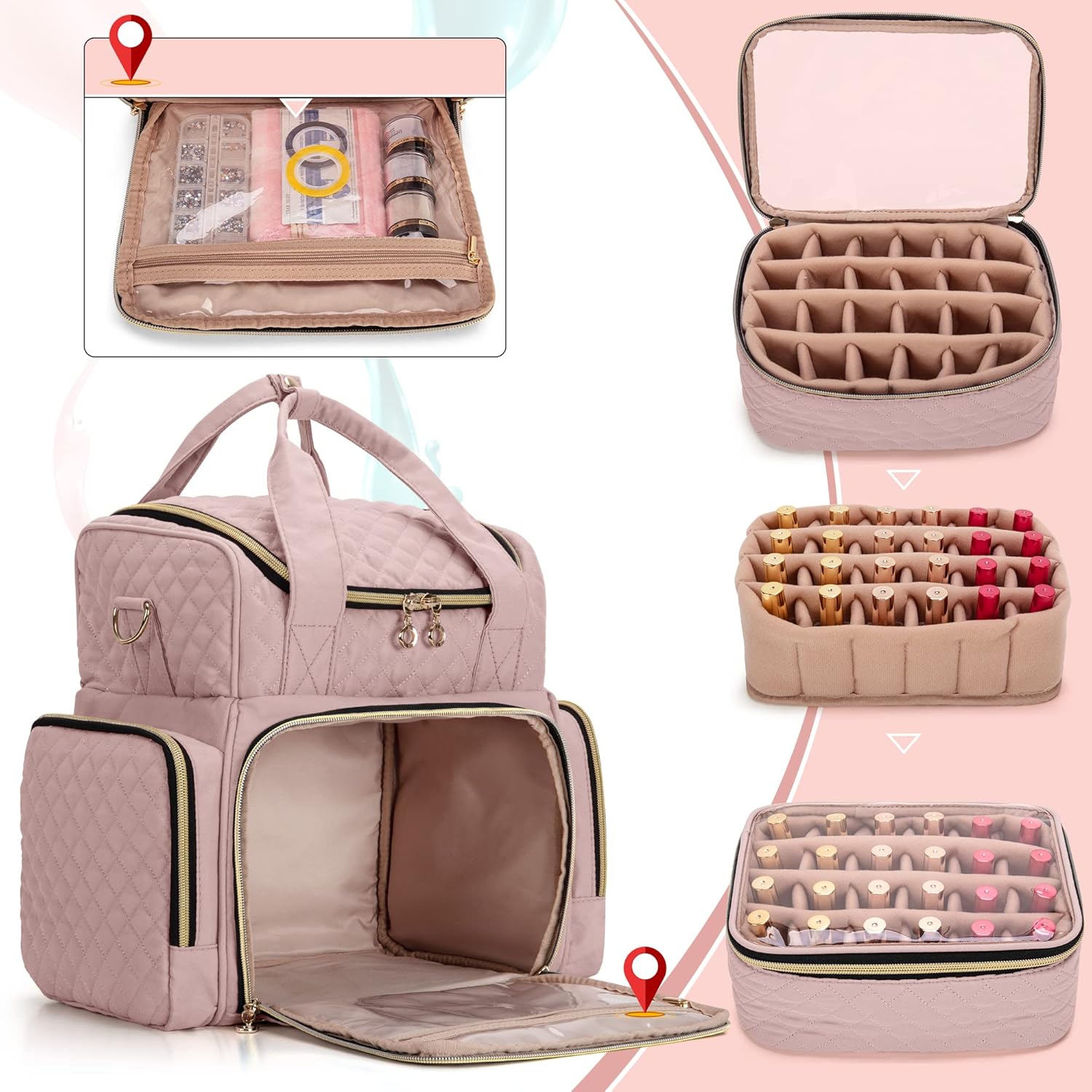 LUXJA Nail Polish Organizer Holds 48 Bottles and a Nail Lamp, Nail Polish Case with 2 Removable Bags and Tools Storage Pockets (Patent Pending), Pale Rose