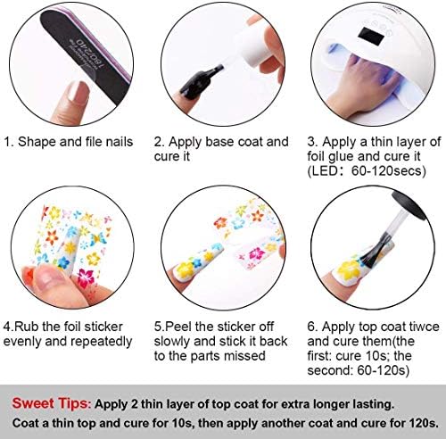 Nail Curing Lamp Required: Makartt transfer foil glue should be cured under nail dryer light for a perfect foil result for 40secs-2 mins) ; Using with durable top coat can prolongs the foil result in daily life