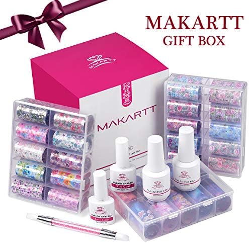 Makartt Professional 30Rolls Nail Art Foil Stickers Set with Foil Glue Gel help you DIY your unique foil nail art design in minutes. Easy to apply and perfect for nail art beginners. Fast and convenient to do your own nail style.