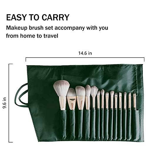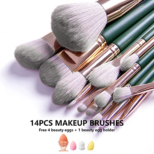 SDVJLKV 14PCS GREEN MAKEUP BRUSHES SET