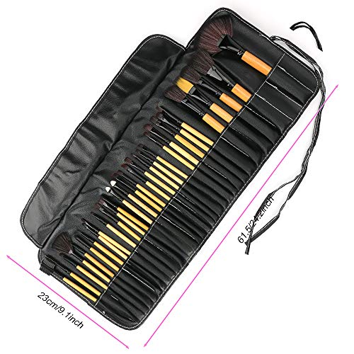 Makeup Brushes, BicycleStore 32 Pieces Professional Foundation Makeup Brush Set with Leather Storage Bag Basic Eye Make Up Pens Kits for Face Making Up – Wood Color